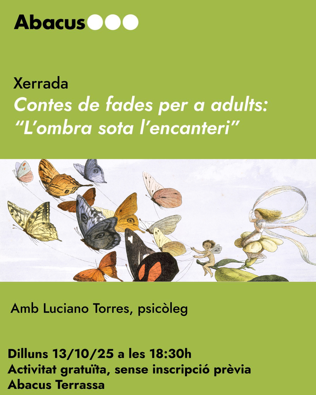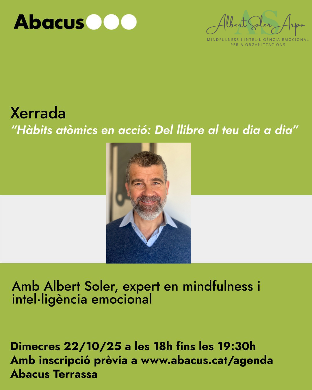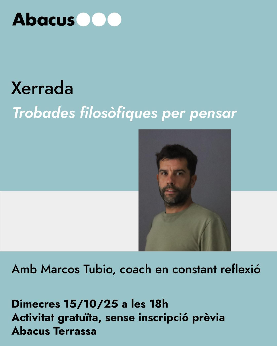 A continuació us llistem l'agenda d'activitats i tallers per a adults que organitza Abacus Terrassa pel proper mes d'octubre: