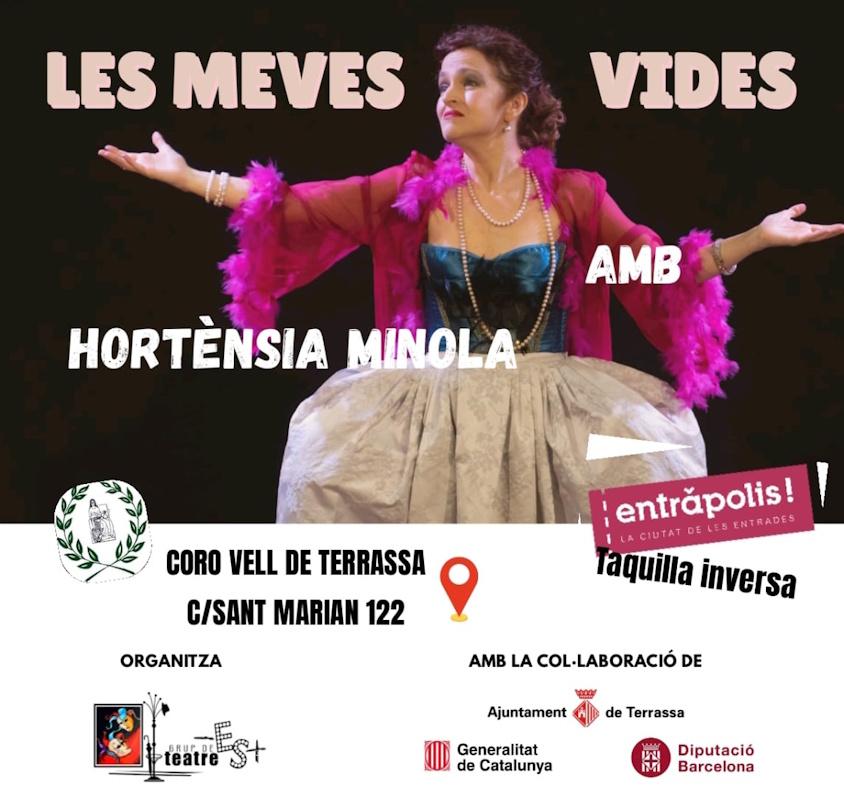 Aquest dissabte 27 de setembre (18h), la Societat Coral Joventut Terrassenca (Coro Vell) acull l'espectacle teatral "Les meves vides", amb Hortènsia Minola. Un espectacle ple d’humor, emoció i glamour.